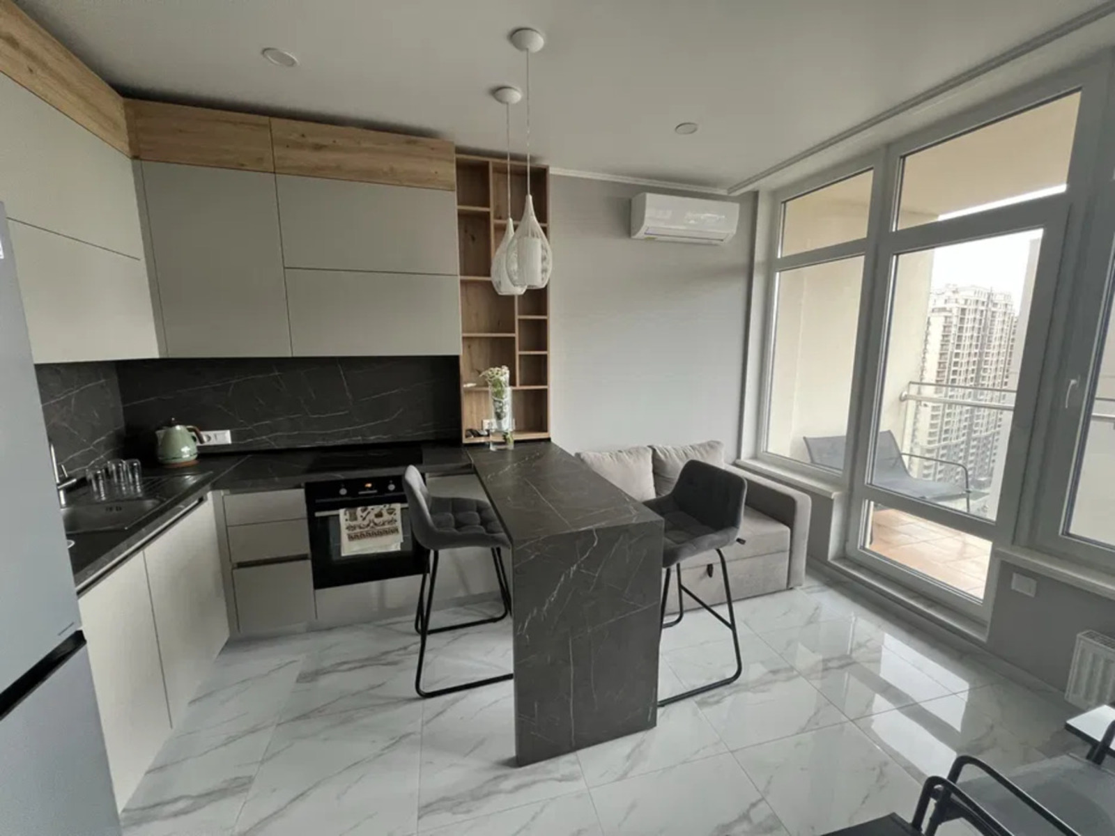 Виконано євроремонт, квартира повністю укомплектована меблями та вбудованою технікою.