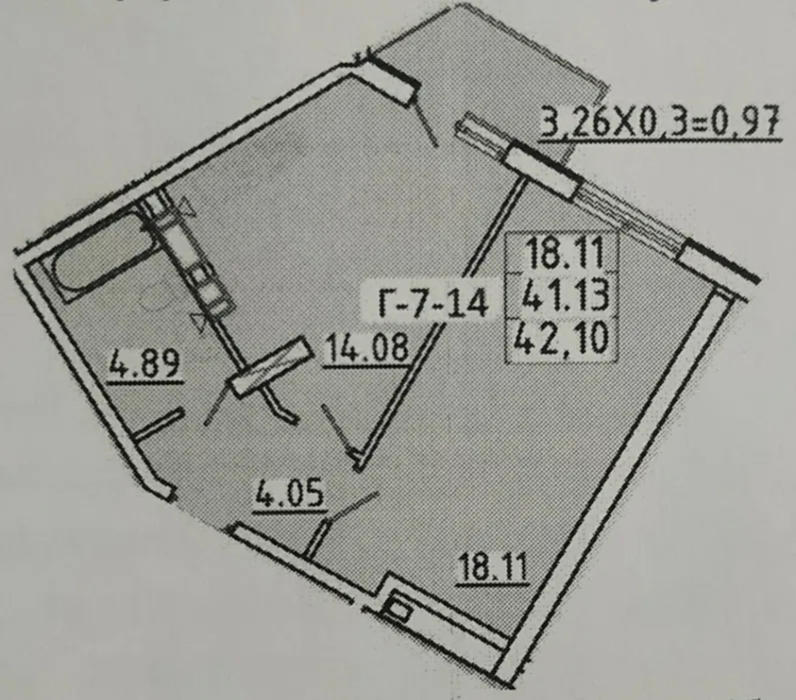 Загальна площа квартири 42 м2, розпланована на окрему кімнату і кухню, є балкон.