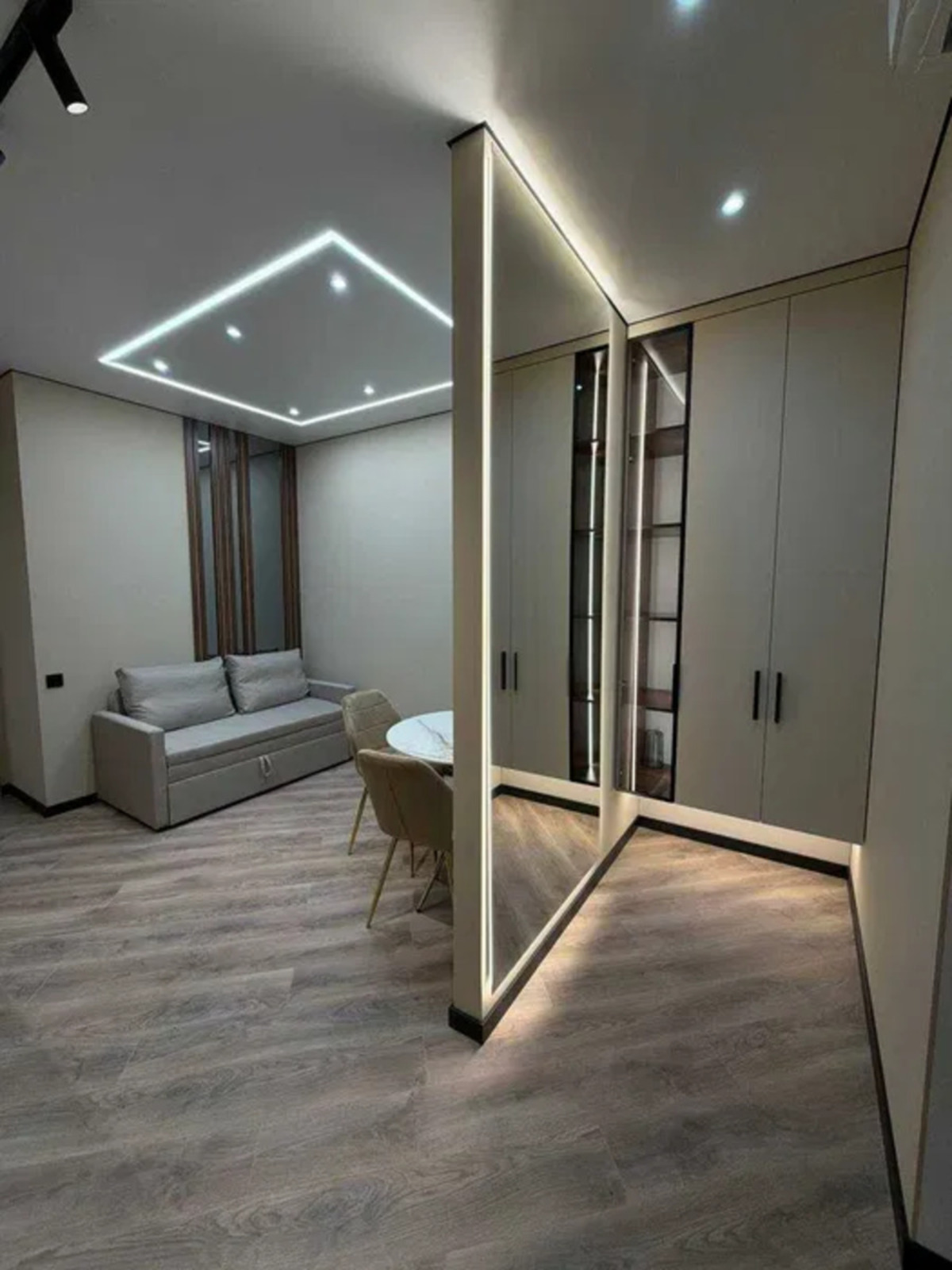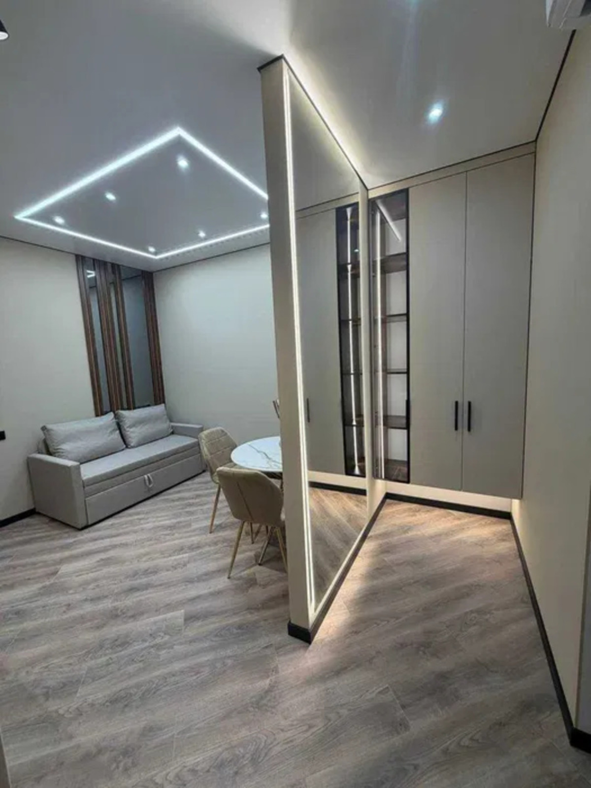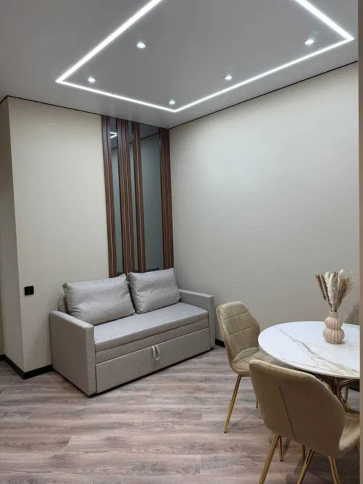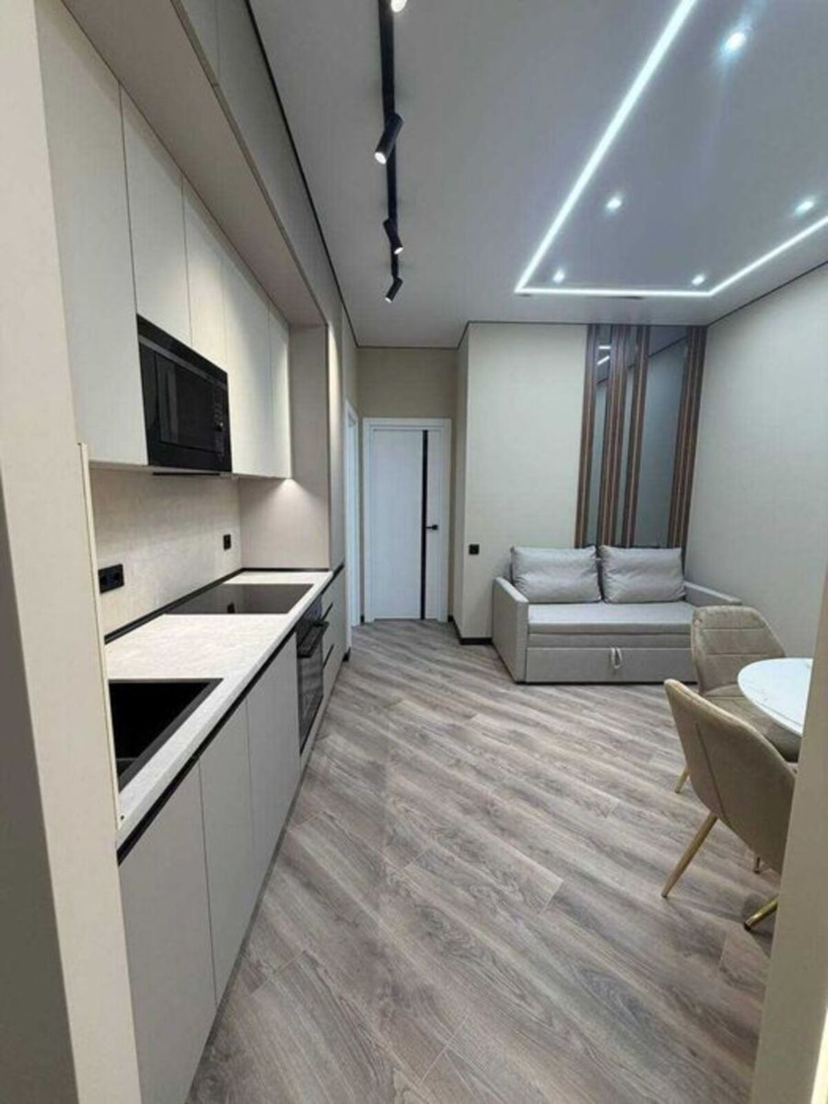 Загальна площа 42 м2 розпланована на 2 окремі кімнати і кухню-студію. Суміжний санвузол з ванною.