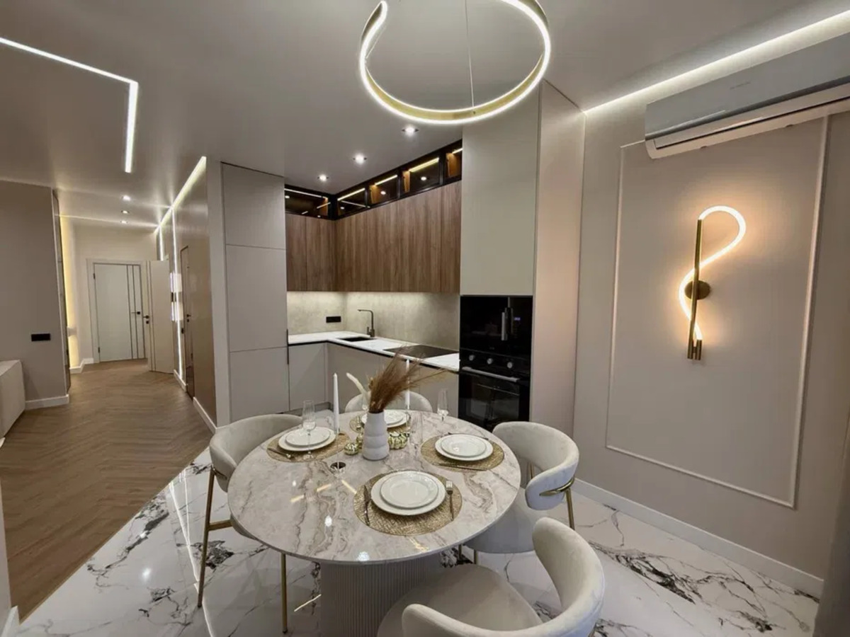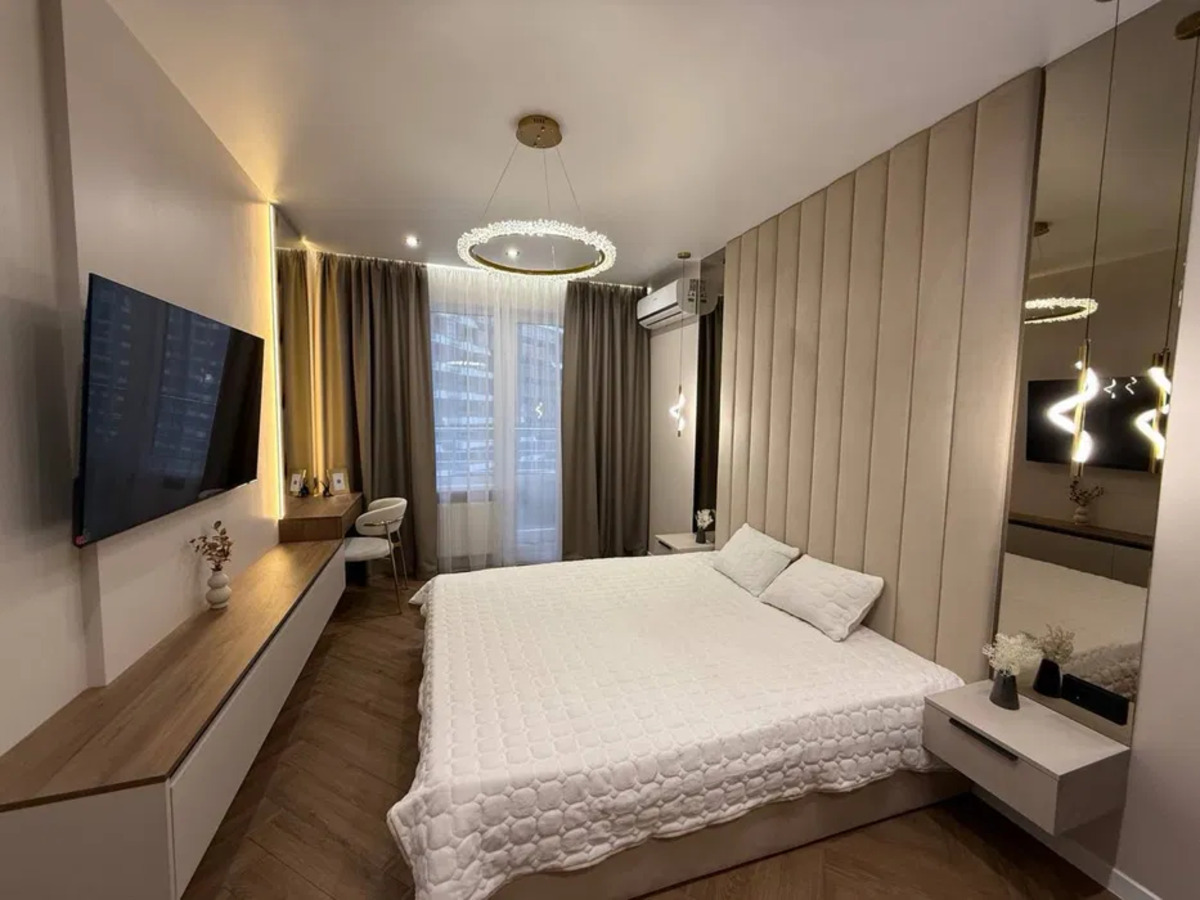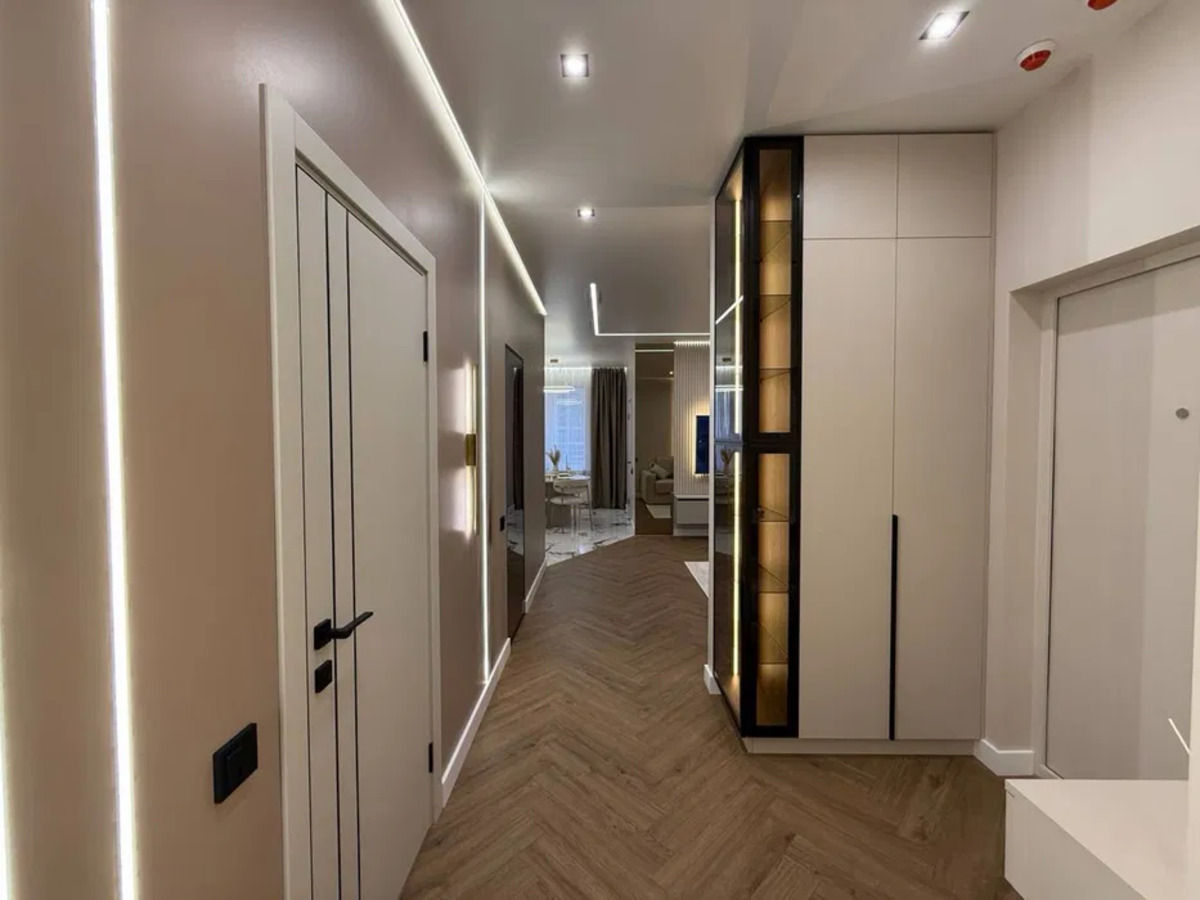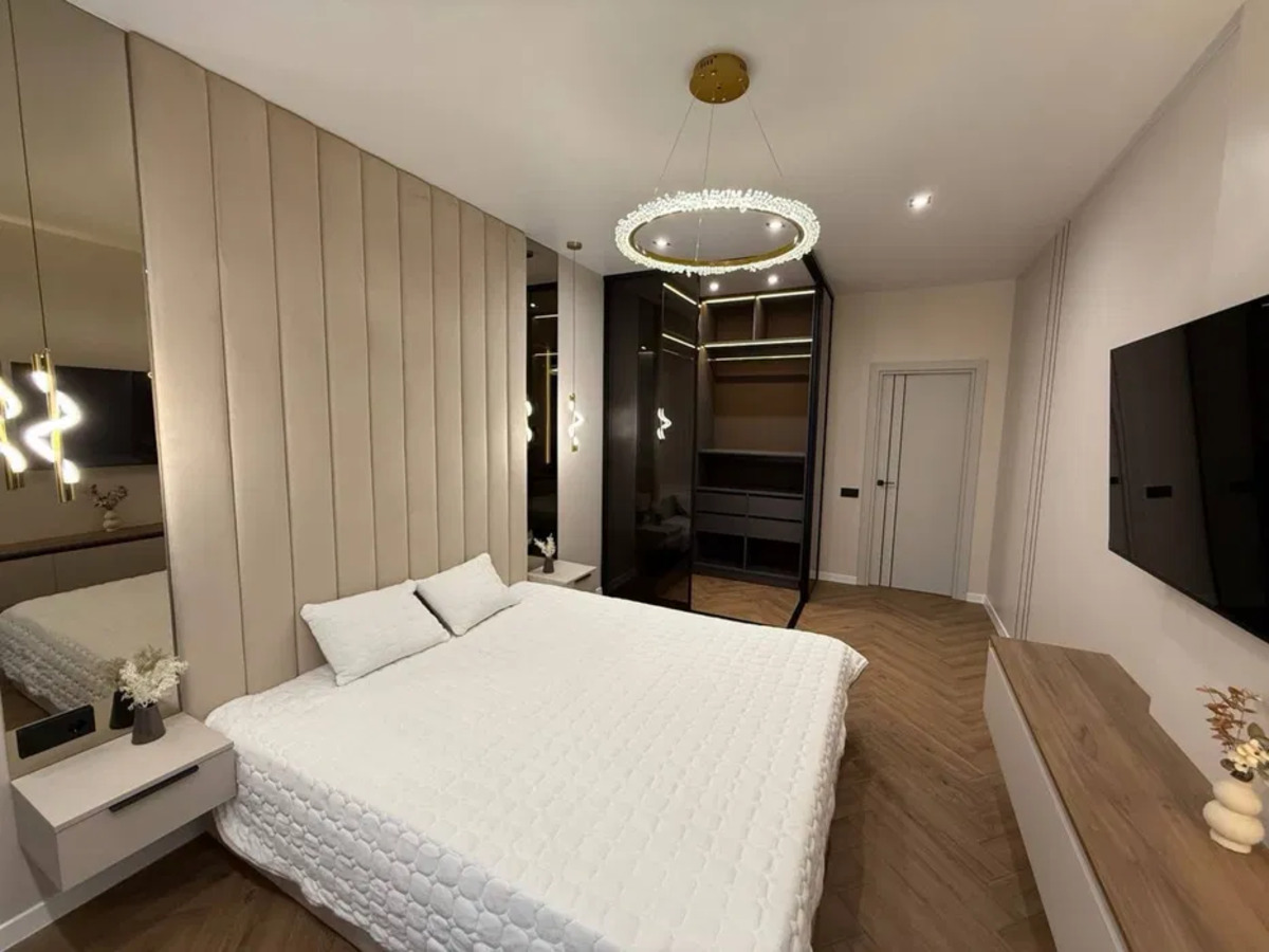 Квартира на дві сторони – єдина квартира в цьому комплексі з таким плануванням, 78 кв.м. стильного та продуманого простору: – дві просторі затишні спальні – дві гардеробні – Багато нових дизайнерських рішень, світла та підсвічування – повна комплектація – заходь та живи – кухня-вітальня