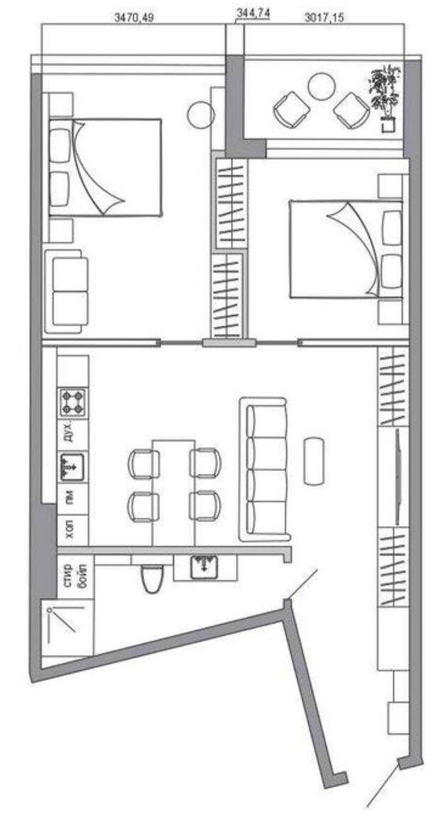 Двухкімнатна квартира, загальною площею 75 м2 вільного планування в ЖК Кандинський на Французькому бульварі.