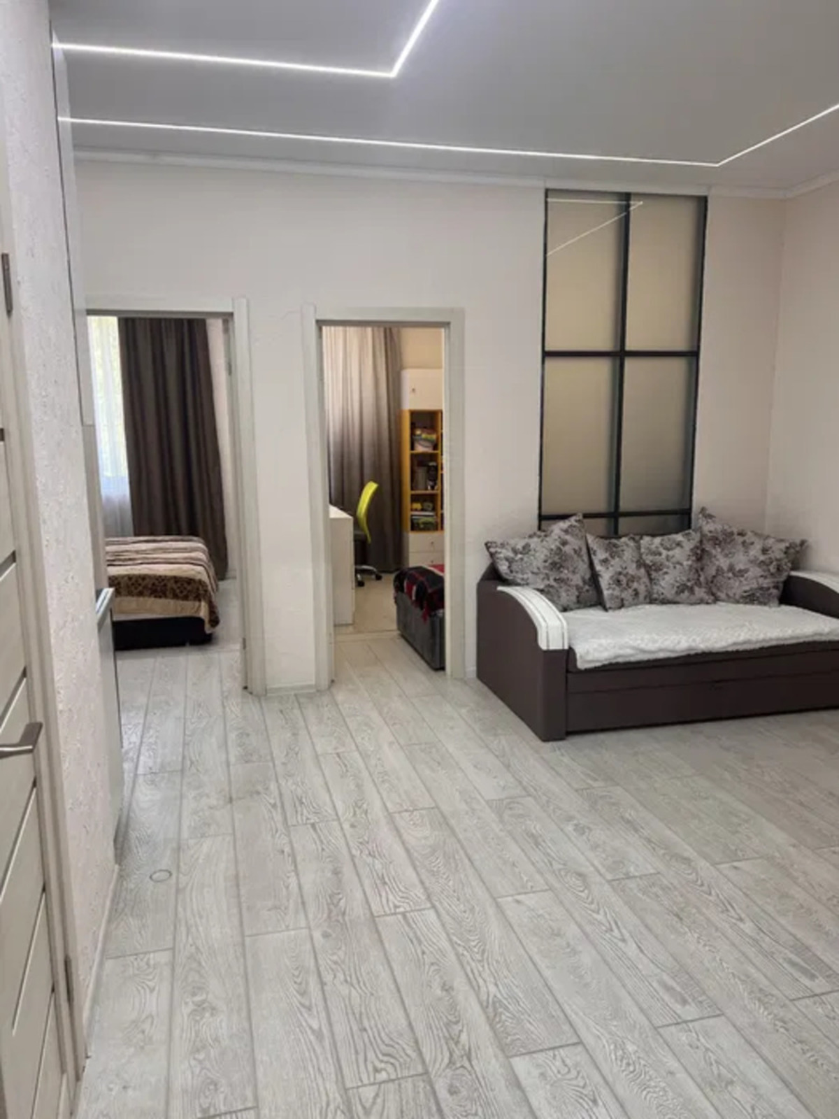 У квартирі виконано новий євроремонт. Планування передбачає дві окремі кімнати та простору кухню-вітальню, що ідеально підходить для сімї з дітьми. Санвузол суміжний.