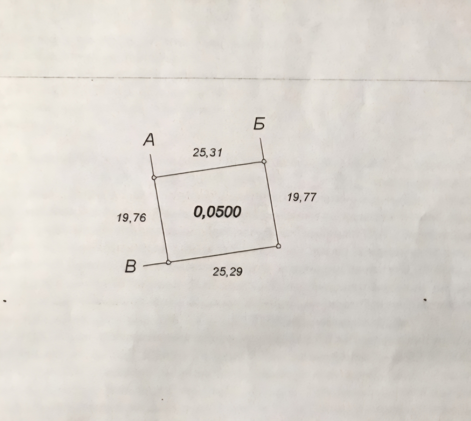 Кутова ділянка з сторонами 25,29 та 19,77, будь яка сторона може бути фасадом.